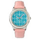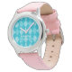 Les filles mignonnes regardent avec motif diamant Jacquard rétro. Avec des bandes roses ou blanches. Idée cadeau de preppy mignonne pour les enfants comme fille ou petite-fille. Couleurs turquoise personnalisables. Des montres pour enfants branchées.