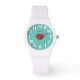 Design moderne personnalisé design turquoise, blanc et rouge bracelet avec le prénom et le nom du propriétaire. Les lettres sont situées sur le cadran au lieu des chiffres. La montre dit Amelia Smith. Au centre du cadran sont des lèvres rouges pour la couleur accent, au-dessus d'elles le nom rouge Amelia. Vous pouvez modifier la couleur de l'arrière - plan, la couleur de la lettre, la police, écrire votre prénom et votre nom en cliquant sur le bouton "Personnaliser", puis sur l'inscription "Cliquez pour customiser plus loin". Si vous ne pouvez pas écrire votre prénom et votre nom vous-même, veuillez me contacter dans un message personnel.