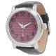 Cette montre pour hommes a un design art déco de demi-cercles et de lignes qui ressemblent à un lever de soleil en or sur un champ d'aubergine. Vous voulez des couleurs différentes ? Message-moi.