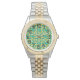 Cette montre pour femmes a un design moderne du milieu du siècle de rectangles arrondis avec ovales à l'intérieur dans des couleurs rétro de turquoise, turquoise, blanc cassé et or. Si vous voulez le même design avec des couleurs différentes, envoyez-moi un message.