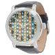 Cette montre pour hommes a un design moderne du milieu du siècle de cercles blancs "déformés" reliés à des lignes noires sur un champ de bandes vertes, orange, turquoise et or. Si vous aimez le design mais préférez différentes couleurs, envoyez-moi un message.