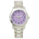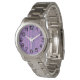Cette montre pour femmes a un design art déco qui ressemble à un circuit board. Les lignes fonctionnent verticalement en turquoise sur un champ de violet. Vous voulez une couleur différente ? Message-moi.