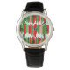 Cette montre pour hommes a un motif de Noël de lignes en rouge et vert en longueurs variables.