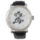 Ajoutez votre propre logo d'entreprise à cette montre. Fond blanc. Parfait pour promouvoir votre entreprise et votre marque. Faux or, or horloge en or numéros de visage comme une superposition à votre logo d'entreprise.