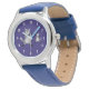 Cette magnifique montre présente une image art numérique d'un joli loup d'Halloween. Le loup est gris avec de mignons yeux bleus et une queue moelleuse. Il a des pattes noires et ses bras larges ouverts à l'air mignon et effrayant en même temps. Un design Halloween amusant pour tous les âges.