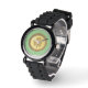 Cette superbe montre présente une image graphique d'une pièce d'or avec deux nuances d'or. Le cercle extérieur a une texture rugueuse. À l'intérieur du cercle intérieur de la pièce se trouve un shamrock doré texturé composé de 3 feuilles et d'une tige.