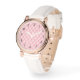 Une montre avec une belle motif féminine. Motif rose doux aux formes diamant bouffantes avec une perle d'or au centre. Luxe et élégance.