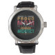produit parfait pour la célébration de la fête nationale du 26 juin. j'ai acheté la montre en parcourant, je n'ai pas demandé sa conception ni sa réalisation. néanmoins j'envisage au vu de la qualité de fabrication j'envisage de passer une future commande personnelle