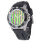 Cette montre pour hommes a un design simple Mardi Gras de rayures verticales en jaune, vert et violet.