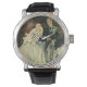 Illustration vintage d'amour et de romance image art déco représentant une mariée et un marié descendant l'allée après la cérémonie de mariage. L'homme porte un smoking et la femme porte une robe de mariée blanche et tient un bouquet de fleurs de calla. Le couple de jeunes mariés heureux commence sa vie commune.