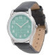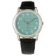 Cette montre pour hommes a un design Art Déco fait d'angle droit avec un labyrinthe à l'intérieur en turquoise sur un champ vert mer.