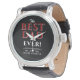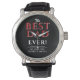Meilleur papa Jamais une Typographie moderne Noir et Blanc Montre de la Fête des Pères. Le design a une typographie moderne en blanc et rouge sur arrière - plan noir. Personnalisez avec vos noms.