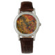 Montre en cuir brun pour femmes avec l’image d’une fractale de chocolat fondu qui fait bouche-à-oreille. Des orbes en cristal rouge en option marquent les positions 12, 3, 6 et 9.Voir la collection Fractal Art Watch dans la section ACCESSORIES.