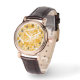 Un joli visage de montre coloré orné de design carré, rectangle, carrelage et bloc jaune et blanc doré. Les nombres noirs sont un modèle que vous pouvez supprimer dans l'option personnaliser. Choisissez parmi une multitude de styles de groupes de montres. Vous pouvez également transférer ce design là où il convient à un autre produit dans la barre de défilement comme l'horloge murale ou la montre de poche.