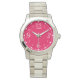 Montre moderne à poutres roses chaudes rétro avec un arrière - plan couleur personnalisable.