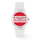 Very nicely made. The design is perfect. Comfortable and light watch. The plastic is nice and smooth and not rigid at all. Love it that you can see it at night! Excellent print quality. Even the small detail of text came out well.