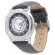 Personnalisez la montre sportive moderne de cet enfant avec des initiales modifiables. Design est un graphique circulaire en texte au centre en détails violets et noirs et blancs. Il suffit de modifier les lettres dans l'éditeur Zazzle facile. Beaucoup d'autres options de lunettes et de style de bande disponibles à sélectionner pour customiser plus loin pour en faire un cadeau pour un enfant.