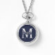 Monogramme personnalisé et cadeaux de nom avec monogramme blanc personnalisé dans le style de police serif classique avec boîte de nom au milieu du monogramme sur arrière - plan bleu marine.