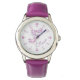 Monogramme lettre F coeurs et fleur ajouter votre propre nom montre, actuellement dit Fiona. Dessin mignon de la lettre F entourée de chiffres d'horloge et de coeurs dans les couleurs pastel rose violet et jaune clair. Autres articles correspondants disponibles pour cette lettre et d'autres lettres. Si vous avez besoin d'aide pour placer votre propre nom sur ce produit, veuillez me contacter. Design unique et dessin d'encre par Sarah Trett www.sarahtrett.com pour www.mylittleeden.com sur Zazzle