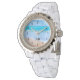 Montre monogrammée avec photo d'une scène océanique bleu clair avec des vagues douces le long d'un bord de mer et du sable brun doux. Un ciel bleu avec des nuages moelleux au loin. Un paysage marin tropical idyllique.
