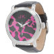 Montre Monogramme vache rose chaud et noir