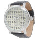 Montre avec design d'échecs avec des pièces d'échecs foncées et légères en rangs.