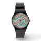 Montre Motif en marbre d'or rose rose rose bleu Aqua Turq
