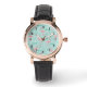 Une montre avec un motif fantaisiste. Flamants roses pastel sur un arrière - plan vert clair. Plaquettes de lis vert et fleurs de lotus. Jolie ambiance tropicale.