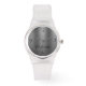 This sporty 80s style watch with durable clear silicone buckle strap and metal grid effect face, features simple name and numbers in black. These were called "Jelly watches" in the 80s. Easily change or remove name using the Template provided. To edit and change font style, font color, size and more-- use the Design Tool. White and black silicone straps are available. There are 15 styles available. See "About" for more information.