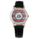 Design nautique avec décoration de voilier en forme ronde sur rouge, bleu et blanc rayé arrière - plan