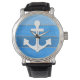 Design à thème nautique avec décoration d'ancre sur arrière - plan rayé bleu et gris en bois. Veuillez noter que ce n'est pas fait de bois, c'est une impression graphique en bois.