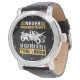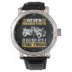 This bold wall clock is a tribute to the seasoned tow truck operator. Featuring a distressed white tow truck against a black background with a yellow rim, it powerfully states: "NEVER UNDERESTIMATE AN OLD MAN WITH A TOW TRUCK". This design celebrates experience and capability, making it an ideal gift for any veteran in the towing profession. The design tool can also be used to add custom text if you want your name or company on this clock. You can customize the color of the frame to any color you desire by going into the design tool.