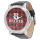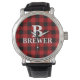Ce design présente un motif tartan rouge et noir ainsi qu'un monogramme au centre de la montre. Vous pouvez personnaliser cet objet avec le nom de famille et le nom de famille de votre famille en utilisant le modèle personnalisé.