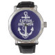 Montre Nom du marin personnalisé Marine Ancre Texte blanc