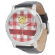 Montre Nom personnalisé mignon pizza rouge à damiers