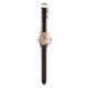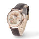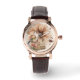 Cette adorable montre Rose Gold e Watch en cuir marron, présente un joli oiseau perché sur un boitier en bois rustique entouré de fleurs sur une toile en vichy beige, créant une scène paisible et naturelle. L'oiseau ajoute une touche de vie à l'ensemble tandis que la boîte en bois lui donne une atmosphère cosy. Cette montre n'est pas seulement un garde-temps mais un joli accessoire de mode qui a une ferme, rustique mais de style moderne!