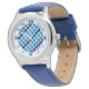 Diagonal range les coeurs dans les tons bleus accent cette montre bracelet amusante montrée dans un style enfant mais aussi amusant pour les adultes. La coordination des nombres bleus sur un arrière - plan blanc permet de dire facilement l'heure.