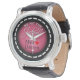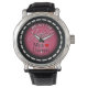 Un mariage amusant et portable garde du saké pour les jeunes mariés de Las Vegas. Le visage de cette montre a un texte qui dit "We Hit The Jackpot!" et comprend des images de puce de casino noir et rose que vous pouvez personnaliser avec vos noms. Utilisez le bouton "Customiser" pour modifier le texte. Disponible en 10 couleurs. "We Hit The Jackpot !" par Cheryl Daniels © 2013. Il s'agit d'une commande personnalisée - si vous souhaitez une telle commande ou quelque chose de similaire pour vous-même, contactez-moi à l'adresse cheryl@cheryldanielsart.com.