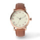 Montre Vintage Rose pour hommes avec une bracelet en cuir Brown, présentant des chiffres arabes en or rose (#B76E79) sur un arrière - plan blanc cassé (#F5F5DC). Ce garde-temps personnalisable peut être personnalisé avec votre monogramme, nom ou image, ce qui en fait un choix classique et sophistiqué pour le travail ou les événements formels.