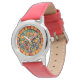MONTRE ORANGE ARBRE AVEC FEUILLES VERTS, FLEURS