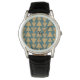 A tribal, boho design in a gold and dark teal geometric pattern.