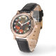Watch with a cool looking owl with a piercing stare. A full moon in the back with a garden of red flowers.