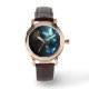 Montre vintage en or rose avec bracelet noir