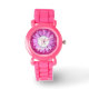 Fille rose marguerite montre personnalisée pour les filles de fleurs - Faux parties scintillant rose chaud arrière - plan avec marguerite rose centre encadrant personnalisée monogrammed initial en rose. Lit 'Flower Girl' en dessous en lettres rétro. Les couleurs et les styles des lettres peuvent être modifiés. Numéros de visage à l'horloge blanche. Un cadeau de mariage personnalisé pour les petites filles de fleurs.