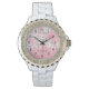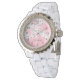 De jolies branches de fleurs de cerisier blanc sur un arrière - plan rose étincelant. Customisez cette montre de luxe girly avec votre nom.