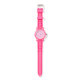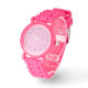 Cette montre est dotée d'un bracelet parties scintillant rose avec un visage rose. Les numéros sont un modèle et peuvent être supprimés en choisissant "Personnalisation".
