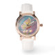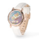 A playful pastel spring butterfly graces the faces of this cute rose gold tone and white leather strap watch. Perfect for any outfit style or occasion.