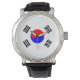 produit parfait pour la célébration de la fête nationale du 26 juin. j'ai acheté la montre en parcourant, je n'ai pas demandé sa conception ni sa réalisation. néanmoins j'envisage au vu de la qualité de fabrication j'envisage de passer une future commande personnelle