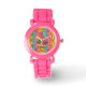 Cette montre analogique amusante et colorée pour enfants est parfaite pour les jeunes patineurs, et elle est entièrement personnalisable avec le nom de votre enfant. Disponible en différents styles et bandes de poignet (silicone ou cuir). Doté d'un design rétro et dynamique avec des tons rose, orange, turquoise et jaune, et d'une illustration avec des bandes arc-en-ciel dressées contre un arrière - plan rétro brillant et ondulé avec des petites marguerites. Une grande surprise d'anniversaire ou un accessoire quotidien pour les amateurs de roller qui aiment montrer leur style unique!