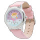 Une jolie montre design d'une petite fille habillée en hiver d'un foulard, d'une veste, de gants et d'oreilles. Elle patine à travers la glace avec de la neige tombant dans l'arrière - plan. Une face d'horloge facile à lire. Grand comme un cadeau de Noël ou d'anniversaire pour les filles qui aiment le patinage sur glace ou les modèles liés à l'hiver.